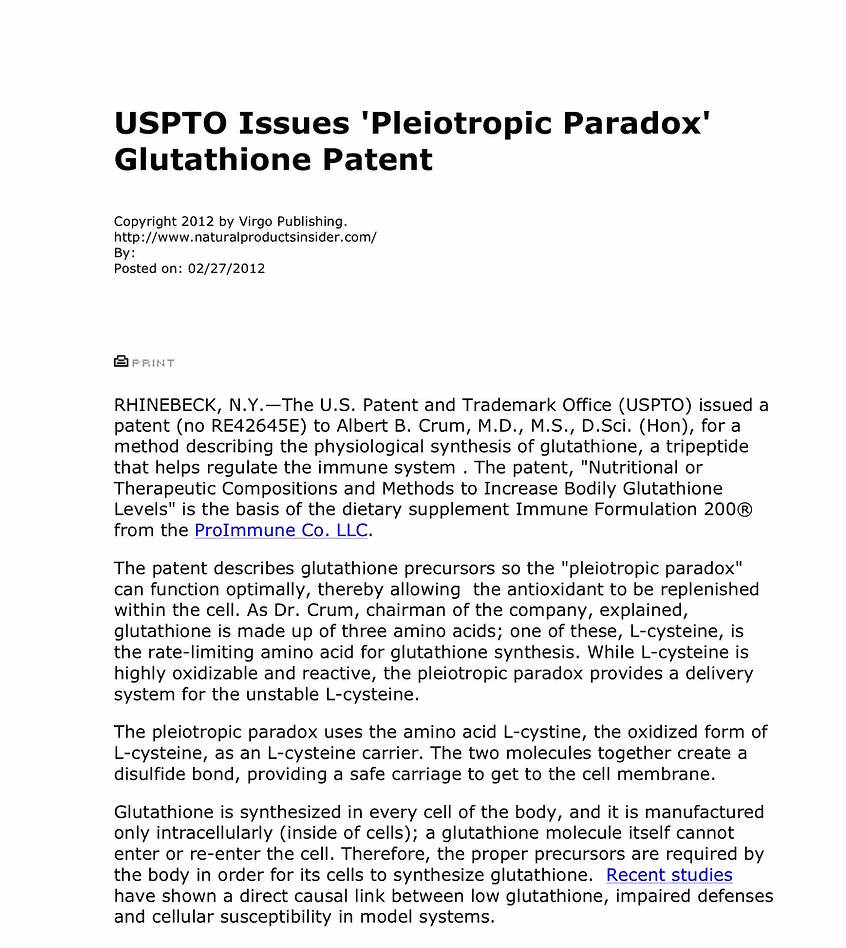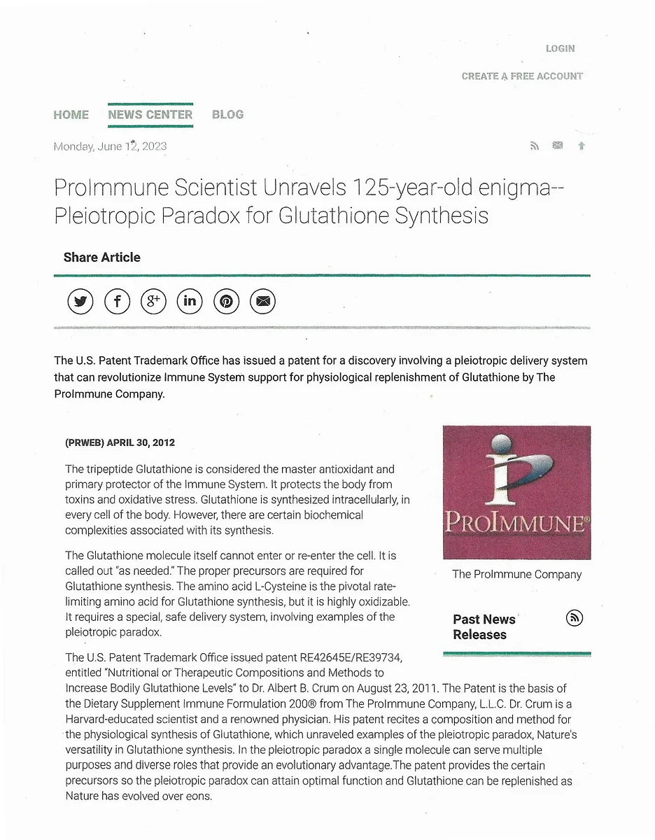 The method of action would simply be to deposit two to three regular scoops of Immune Formulation 200® on the patient’s tongue and almost immediately the Free Form Amino Acid Precursors™ enter the bloodstream and into the cellular synthesis of Glutathione. A scooper is included in each jar. ProImmune is also effective at mitigating heavy metals, gadolinium, glyphosate and microplastics directly inside cells. Nothing foreign to a cell can exist inside the cell when glutathione or oxygen levels are in optimal range.